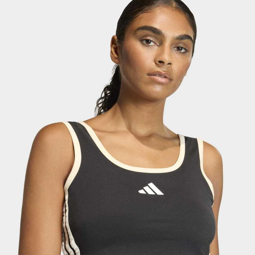 Estampado de goma mate y logotipo de las 3 bandas que refuerzan la identidad de Adidas.