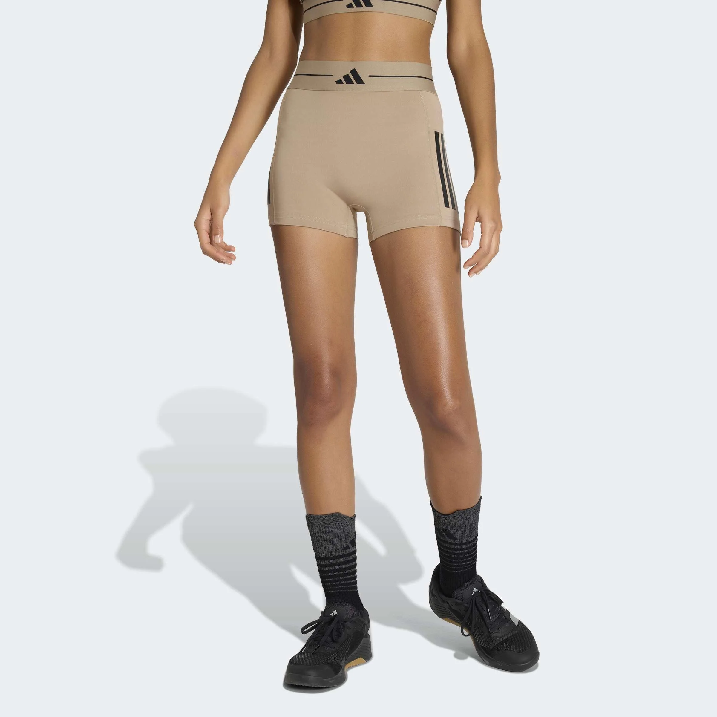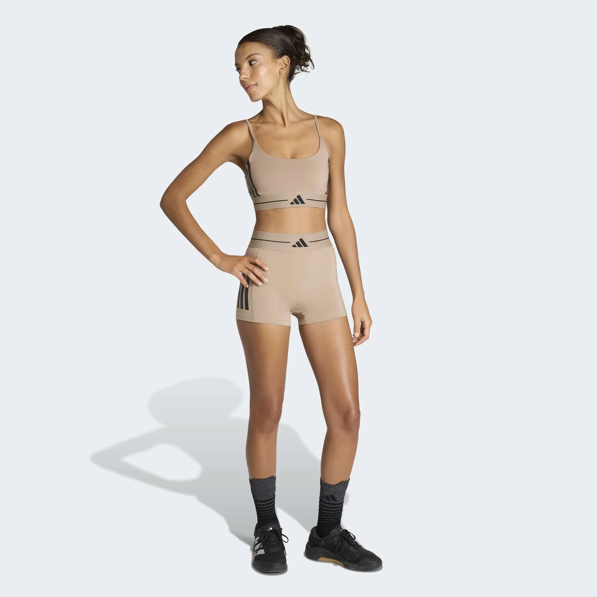 Las Mallas cortas Hyperglam 3 bandas fusionan estilo, comodidad y rendimiento para que te sientas imparable dentro y fuera del gimnasio. Diseñadas para mujeres que buscan funcionalidad sin renunciar a la estética, estas mallas son la prenda perfecta para entrenamientos intensos o para un look deportivo en tu día a día. Su tejido elástico y suave se adapta a cada movimiento, creando una silueta favorecedora que realza tu figura sin oprimir. El diseño incluye una cintura elástica de jacquard con acabado premium que asegura un ajuste firme y cómodo, mientras que el talle alto ofrece sujeción y confianza en cada repetición o paso. La tecnología Climacool mantiene tu piel fresca gracias a su capacidad para dispersar el sudor rápidamente, permitiéndote concentrarte únicamente en tu rendimiento. Las icónicas 3 bandas en las perneras añaden el toque clásico de Adidas, convirtiendo estas mallas en una pieza clave de tu outfit deportivo. Un modelo diseñado para acompañarte desde el entrenamiento hasta tus actividades cotidianas con un estilo único y enérgico.