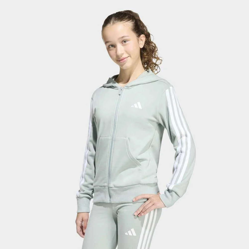 La sudadera con capucha Essentials con cierre de cremallera está pensada para acompañar el ritmo activo del día a día. Ya sea para ir al colegio, jugar con amigos o simplemente relajarse en casa, esta sudadera ofrece comodidad, libertad de movimiento y un estilo deportivo atemporal. Su corte clásico facilita vestir a capas, mientras que el cierre de cremallera integral permite ponerla y quitarla con total facilidad. El tejido de felpa suave proporciona una agradable sensación sobre la piel, y la capucha ajustada mantiene el calor en las mañanas frías o al aire libre. Los detalles icónicos, como las 3 bandas en las mangas y el logotipo bordado de Adidas, reflejan la esencia de la marca: funcionalidad con estilo deportivo auténtico. Una prenda versátil, duradera y diseñada para seguir el ritmo de cualquier aventura diaria.