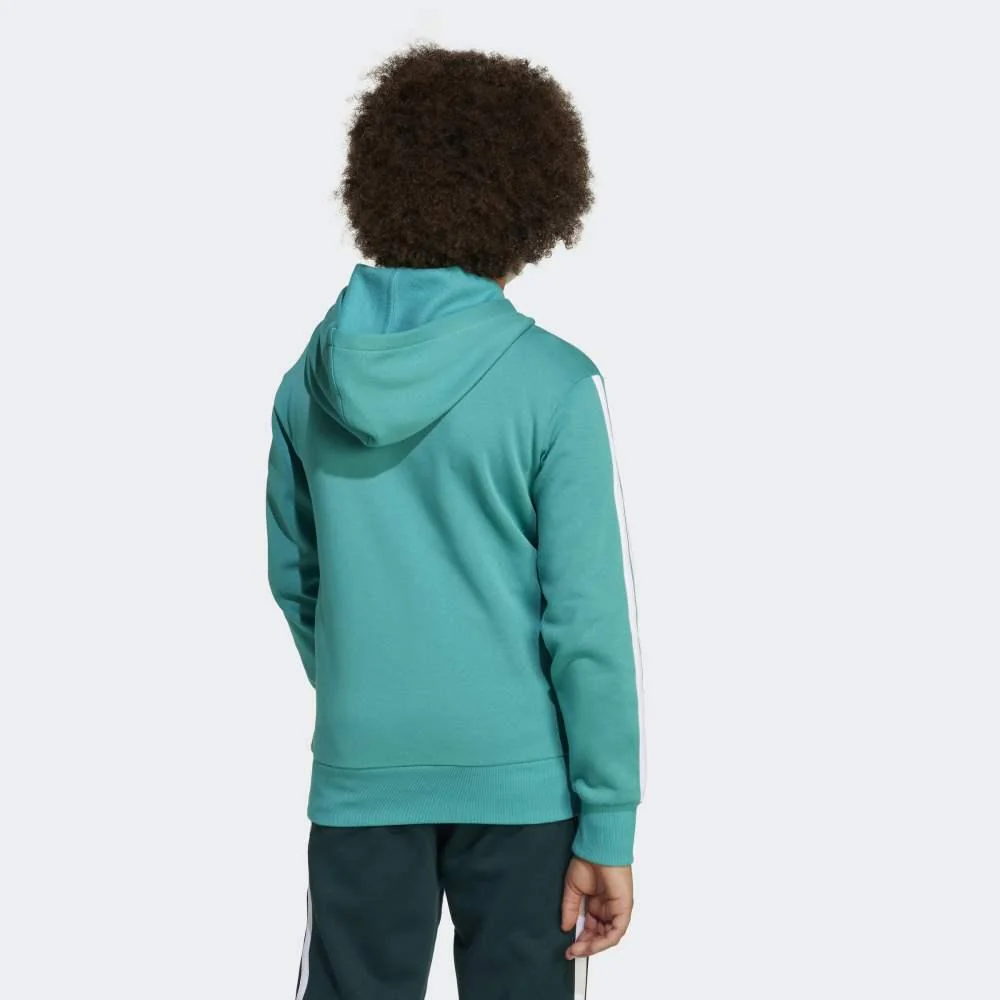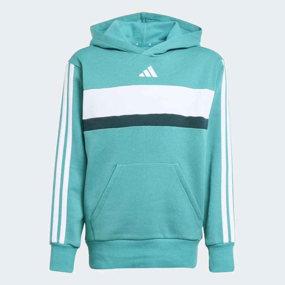 Comodidad, estilo y actitud urbana se unen en la sudadera con capucha Adidas Tiberio Fleece 3 bandas, una prenda diseñada para jóvenes que marcan su propio ritmo. Su diseño de bloques de color, combinado con las icónicas 3 bandas en las mangas, aporta un look actual y deportivo que destaca sin esfuerzo. Confeccionada en felpa suave y cálida, ofrece una sensación acogedora ideal para el día a día. Los puños de canalé ayudan a mantener el calor y un ajuste seguro. Fabricada con al menos un 70% de materiales reciclados y renovables, es una elección consciente que no renuncia al estilo. Perfecta para tener siempre a mano y completar cualquier outfit casual con un toque moderno.