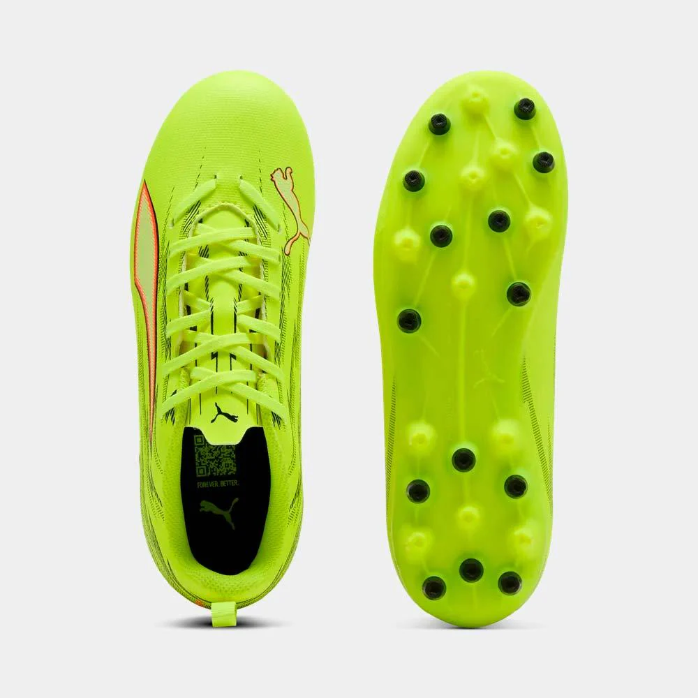 Da tus primeros pasos hacia la velocidad con las botas de fútbol Puma ULTRA 6 PLAY MG Junior, un modelo pensado para jóvenes futbolistas que quieren aprender, mejorar y disfrutar del juego en superficies mixtas. Diseñadas dentro de la colección THE UNLEASHED PACK, estas botas combinan ligereza, comodidad y tracción para facilitar un juego dinámico desde el primer minuto. Su parte superior flexible se adapta al movimiento natural del pie, ayudando a ganar confianza en la conducción del balón, mientras que su diseño resistente las convierte en una opción ideal para entrenamientos y partidos frecuentes. Un modelo perfecto para iniciarse en el fútbol con el estilo y la energía de PUMA.