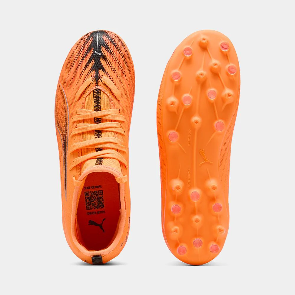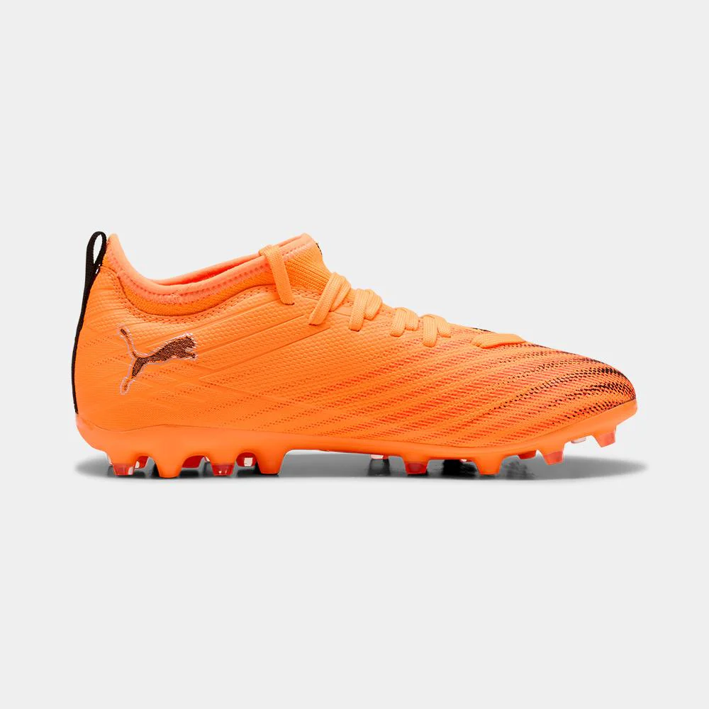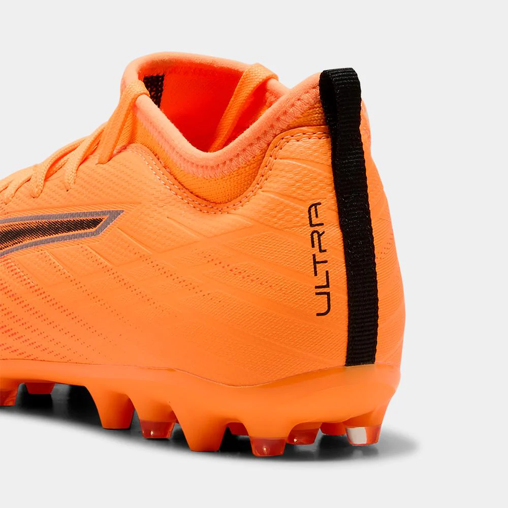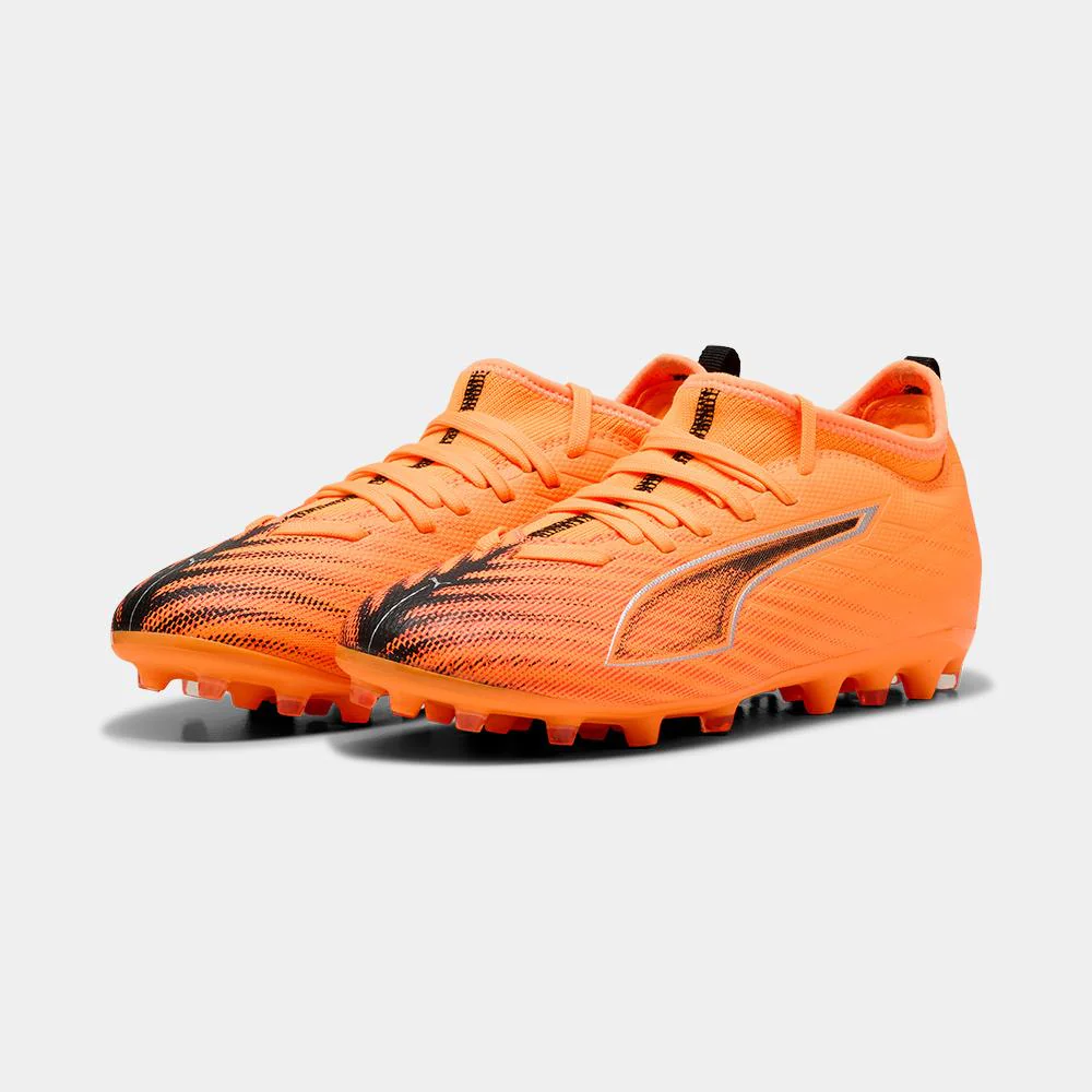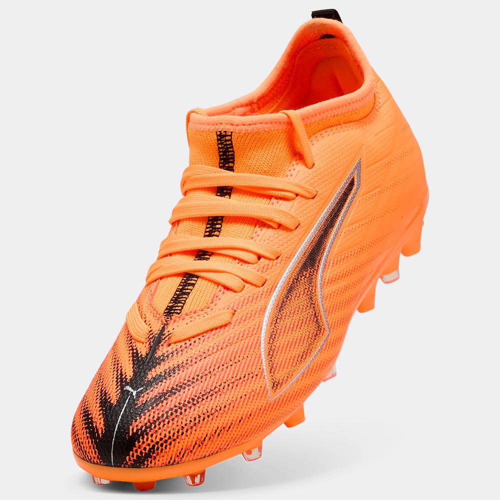 Las nuevas Puma ULTRA 6 MATCH MG Junior están pensadas para los jóvenes futbolistas que buscan velocidad, control y estabilidad en cada partido. Gracias a su diseño ligero y su parte superior reforzada con tecnología GripControl, estos botines ofrecen un toque preciso y una conducción segura del balón. La suela multiterreno MG permite un excelente agarre en campos de césped artificial y natural, garantizando seguridad en los movimientos rápidos. Su vibrante color naranja con detalles en negro transmite energía y dinamismo en cada jugada. Las ULTRA 6 MATCH MG Junior son el aliado ideal para acompañar el desarrollo técnico de los más pequeños con prestaciones de alto nivel.