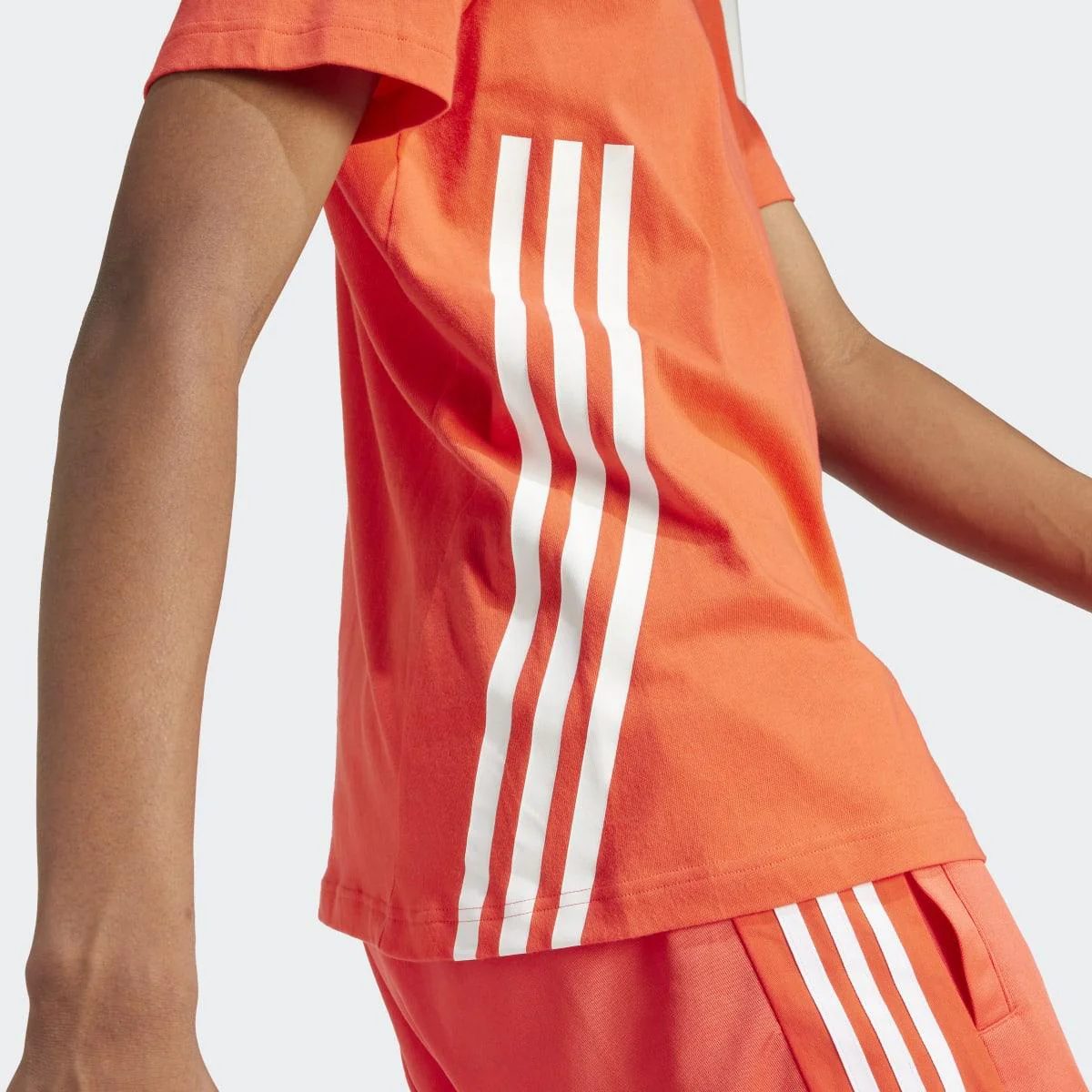 Destácate con un diseño simple pero impactante. La suavidad del algodón cobra vida en esta camiseta adidas que presenta las icónicas 3 bandas, extendiéndose desde la parte frontal hasta la espalda para un toque audaz. Ya sea que la combines con un pantalón de chándal para tus sesiones de entrenamiento o con unos vaqueros para un paseo casual, su comodidad y estilo la convertirán en tu elección recurrente.