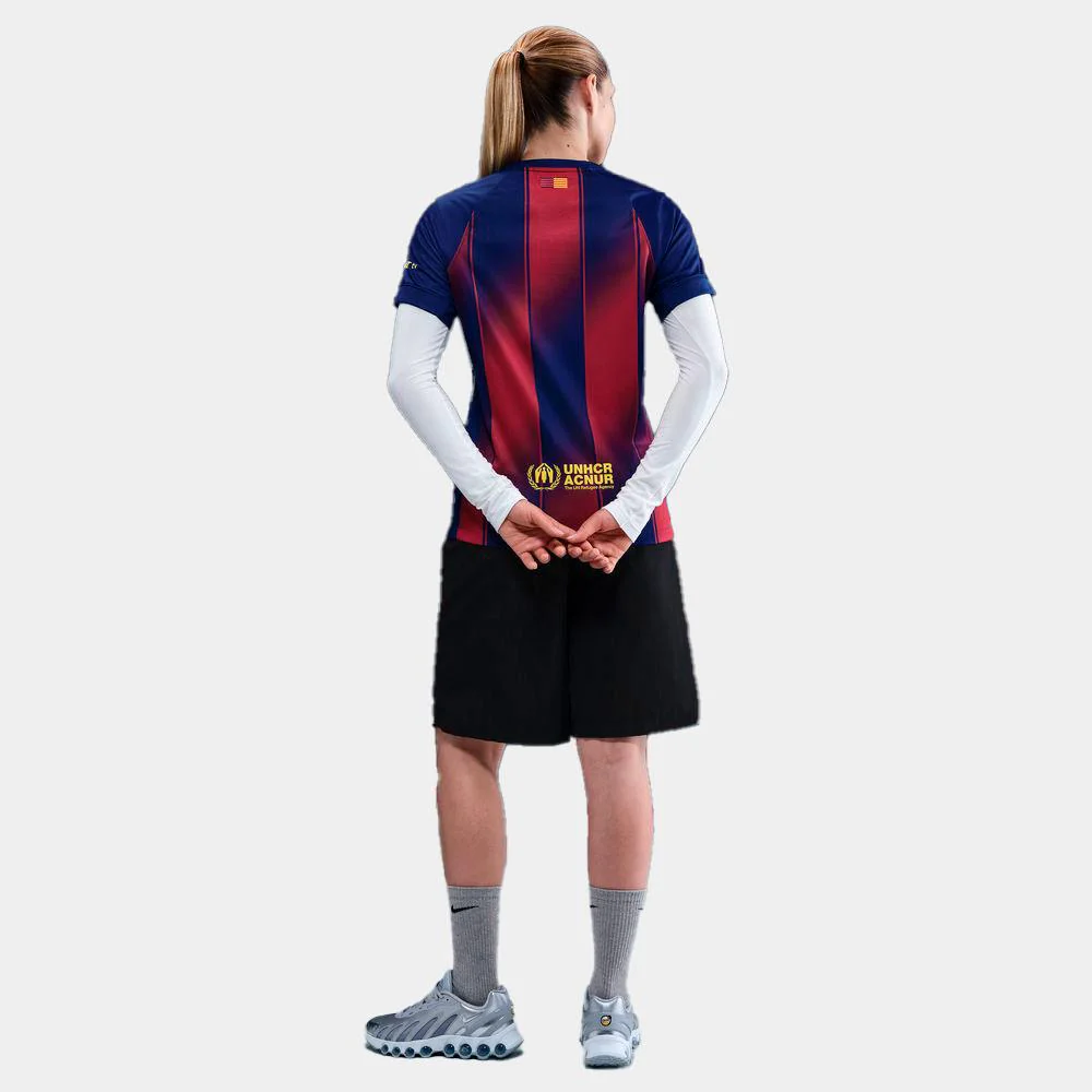 La camiseta Nike Primera Equipación Stadium FC Barcelona 2025/26 para mujer combina autenticidad, estilo y rendimiento en una prenda diseñada para las aficionadas que quieren mostrar su apoyo al club. Esta camiseta réplica actualiza uno de los looks más emblemáticos del fútbol, fusionando los icónicos colores blaugrana con estampados inspirados en el movimiento y detalles brillantes y enérgicos que celebran la pasión y la unidad de la afición. Confeccionada con tecnología Nike Dri-FIT, capilariza el sudor para mantener la frescura, la comodidad y la transpirabilidad durante la práctica deportiva. Ideal para entrenamientos, partidos o para lucir con orgullo el espíritu del Barça en el día a día, esta camiseta combina diseño profesional y estilo auténtico en una prenda versátil y funcional.