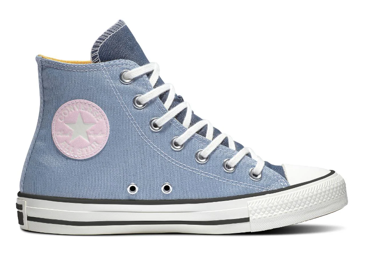 Luce bien, siéntete genial. La leyenda de las zapatillas altas se actualiza con una parte superior de sarga y una lengüeta de mezclilla relajada. Un diseño de bloques de colores sorprende desde todos los ángulos, mientras que los elementos de estilo característicos de Chuck Taylor expresan tu estilo.