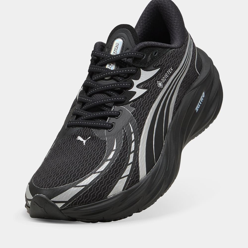 Las nuevas Puma Velocity NITRO 4 GTX están diseñadas para ofrecer un rendimiento superior en cualquier condición climática. Gracias a la incorporación de la membrana GORE-TEX®, estas zapatillas garantizan impermeabilidad y transpirabilidad, manteniendo los pies secos y cómodos incluso bajo la lluvia o en terrenos húmedos. La tecnología de amortiguación NITRO™ proporciona una pisada suave y reactiva, absorbiendo el impacto y devolviendo energía en cada zancada. La suela exterior PUMAGRIP asegura un agarre firme y confiable en distintas superficies, desde asfalto mojado hasta senderos urbanos. Su parte superior de engineered mesh, combinada con detalles reflectantes, completa un diseño elegante y técnico, pensado para corredores que buscan protección y máximo rendimiento durante todo el año.