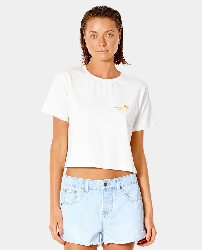 La camiseta Island Crop es una camiseta épica para mujer diseñada con algodón orgánico, con un estampado radical en la parte delantera y trasera.