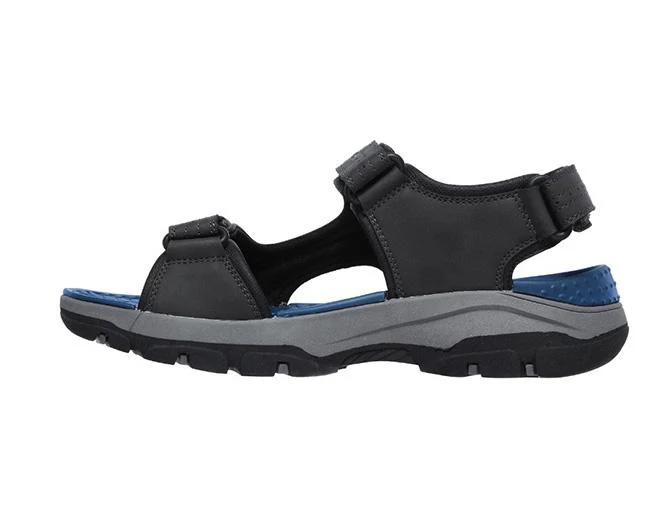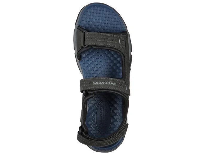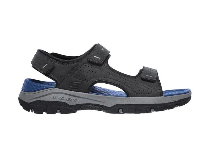 Viaja todo el día con la comodidad duradera de la sandalia Skechers Tresmen – Garo. Esta sandalia abierta Relaxed Fit presenta una parte superior sintética duradera con una plantilla Luxe Foam con amortiguación y un cierre de correa de tobillo de velcro.