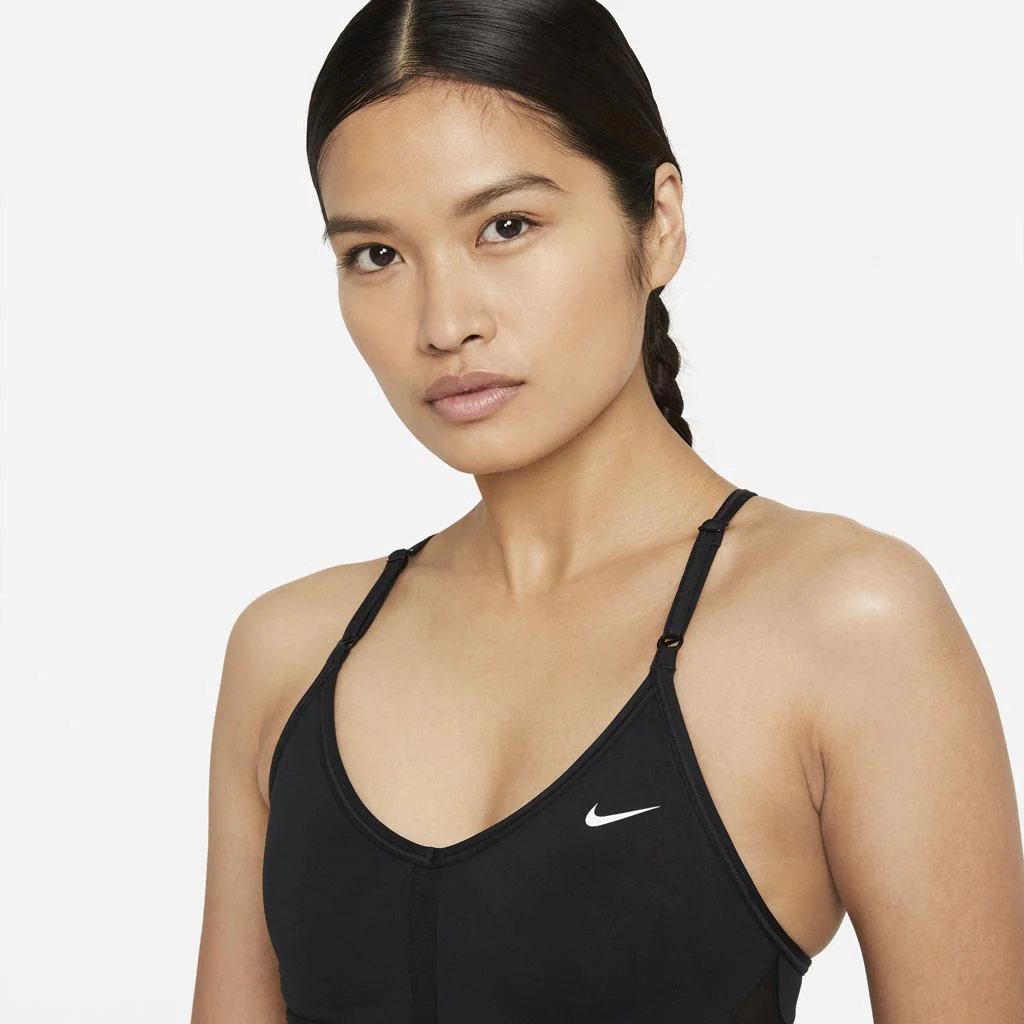 MÁXIMA TRANSPIRABILIDAD. AJUSTE CÓMODO. El sujetador deportivo Nike Indy reinterpreta la comodidad diaria: se regula en la parte frontal para que consigas el ajuste perfecto fácilmente. El tejido suave (confeccionado con al menos un 50 % de poliéster reciclado) está diseñado con más transpirabilidad en las zonas clave con acumulación de calor y con almohadillas extraíbles para ofrecer sujeción y comodidad.